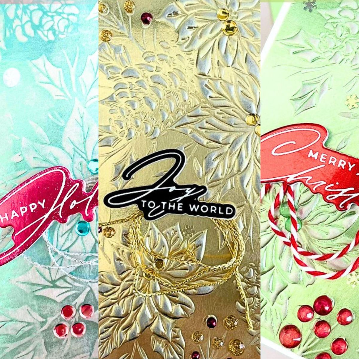 In the previous post, I used the BetterPress plate from the Amaryllis Christmas collection by Yana Smakula for Spellbinders with the Glimmer Hot Foil to create different colored backgrounds (dark, metallic, and white), adding bright and soft tones to them. However, this time we've done something completely different: flat impression and dimensional impression. For this technique, a manual die-cutting machine is needed, as the key lies in the positioning of the plate and the cardstock.